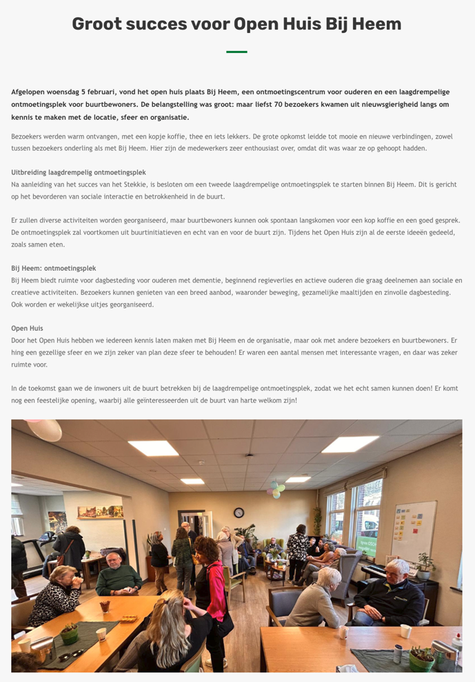 Er is op geen enkel moment sprake geweest van gevaar voor bewoners of medewerkers. Alle bewoners konden binnen de locatie blijven en zijn inmiddels weer terug op hun eigen kamer. Tijdens het incident is de zorgverlening aangepast aan de situatie. Met extra inzet en samenwerking konden we goede zorg blijven bieden aan onze bewoners.