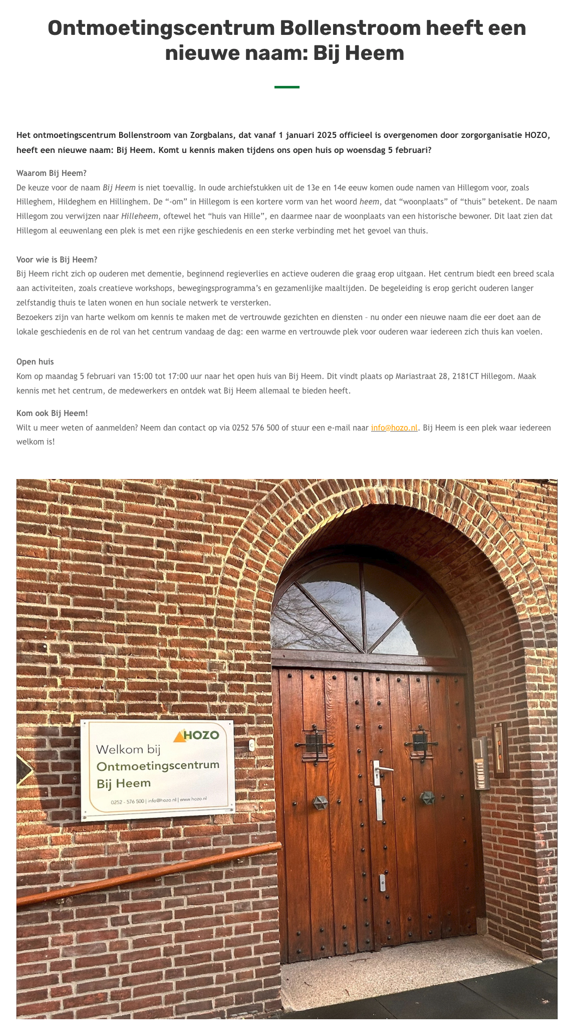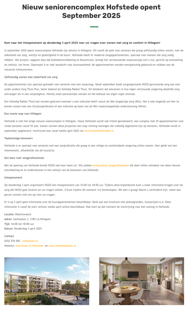 Bij HOZO staat de veiligheid en het welzijn van onze bewoners en medewerkers altijd voorop. We zijn trots op de betrokkenheid en inzet van onze collega’s en willen ook de brandweer en andere hulpdiensten bedanken voor hun snelle en zorgvuldige ondersteuning.